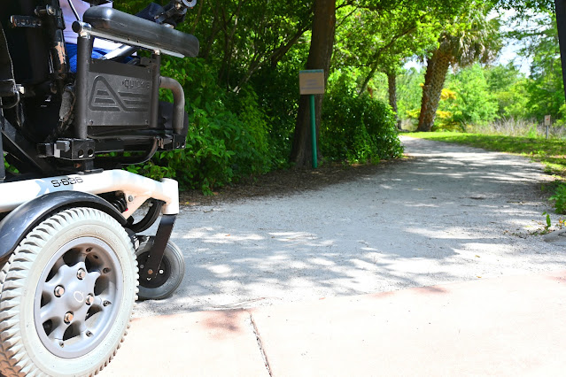 The Botanical Gardens section of this park is absolutely gorgeous! It includes a number of parking lots, all of which have plenty of accessible parking spots WITH unloading zones. Inside, it featured a large variety of plants and animals that call these gardens home, including cardinals, blue jays, and even a mother alligator with her babies. Most of these exhibits are easy to access via wide trails that are fully paved. However, some of the smaller gardens could only be accessed by taking narrower trails that were made of packed dirt and shells. To make things better, the gardens also had a number of accessible bathrooms.